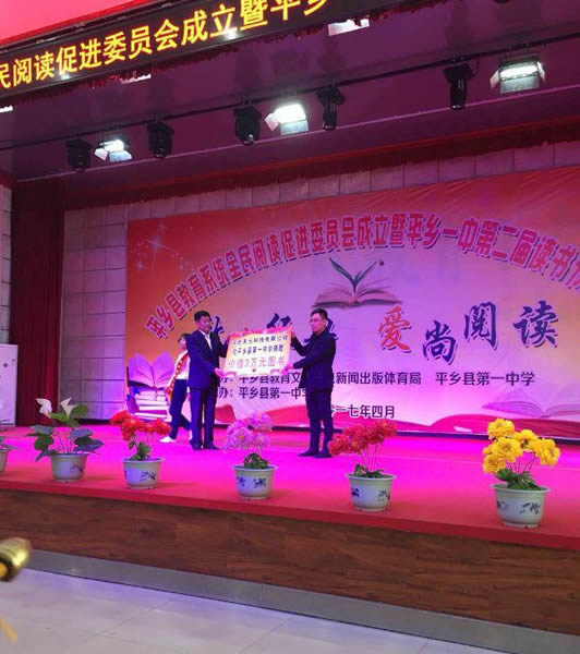 公司參加由平鄉縣教育文化新聞出版體育局和平鄉縣第一中學聯合舉辦的愛尚閱讀活動,并向平鄉縣第一中學捐贈價值三萬元的圖書。